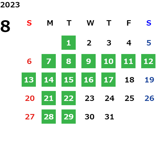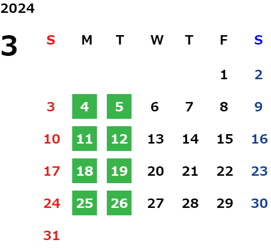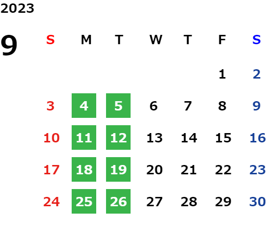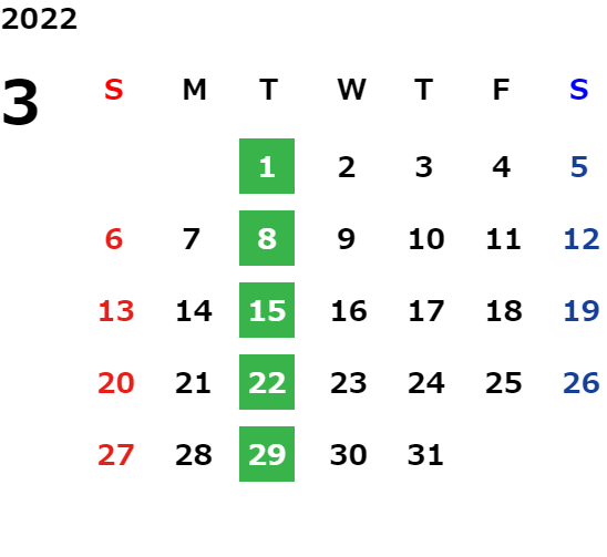 但し、火曜日については店舗にご確認ください