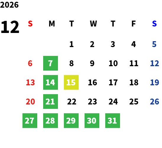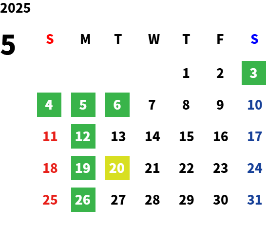 毎週月曜日 (その他休日は営業カレンダーをご覧ください)