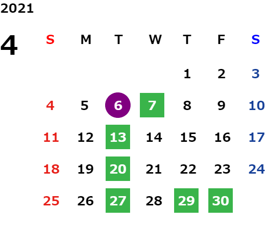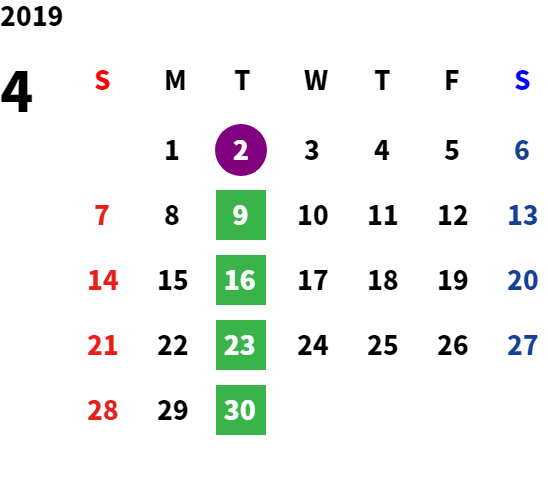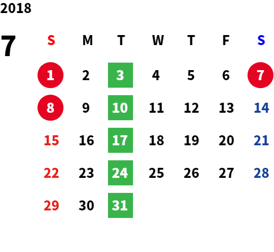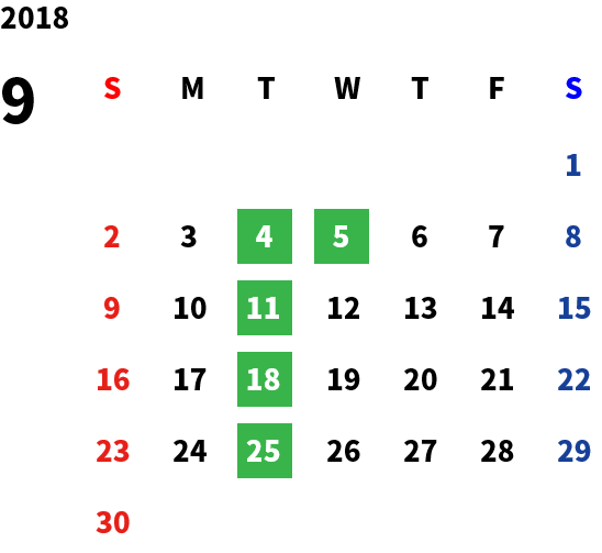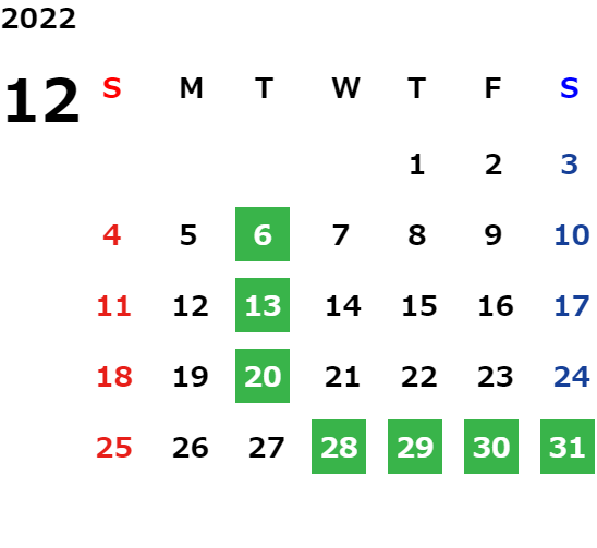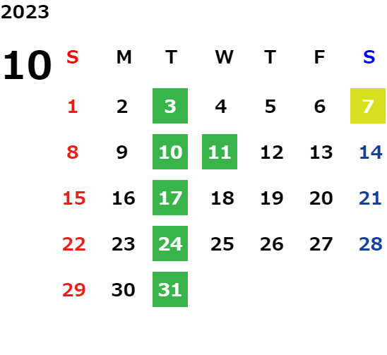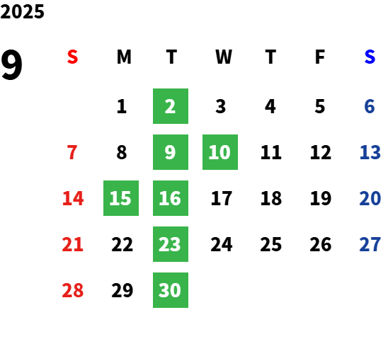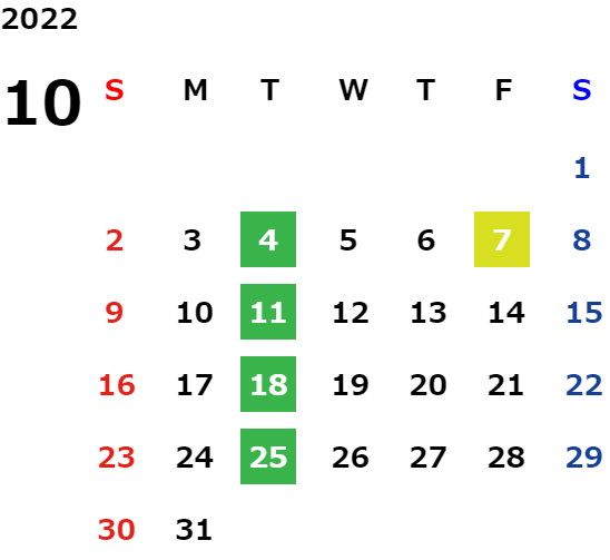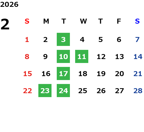 毎週火曜日・祝日・第2水曜日