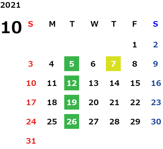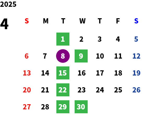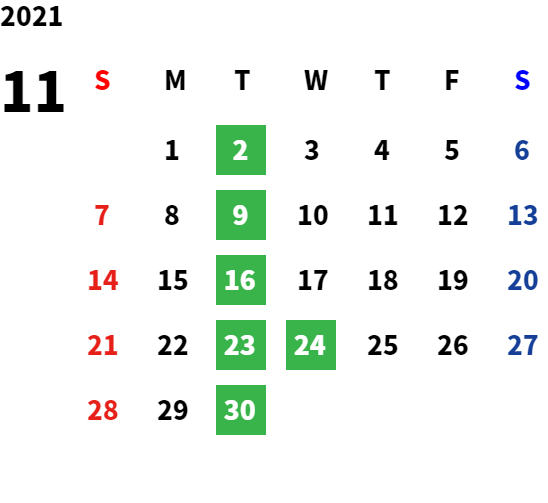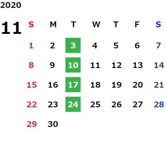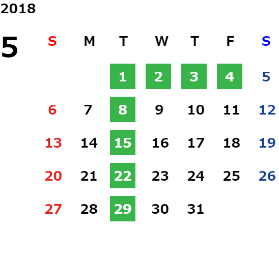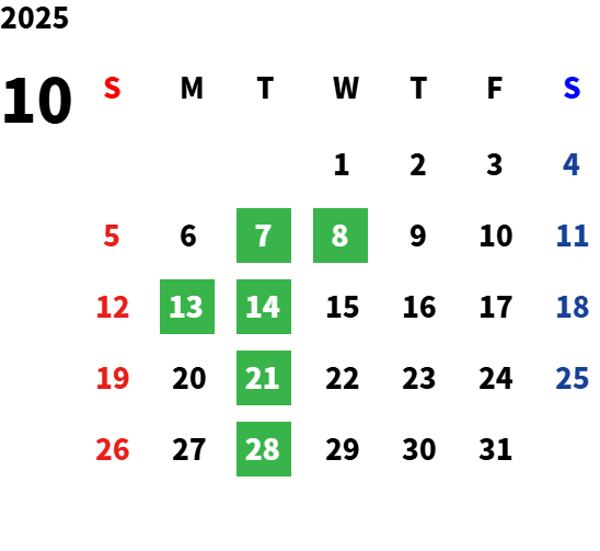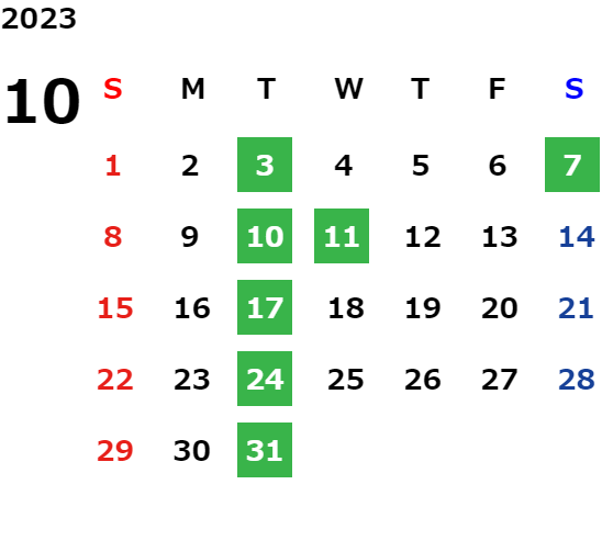 毎週火曜日・祝日・第2水曜日