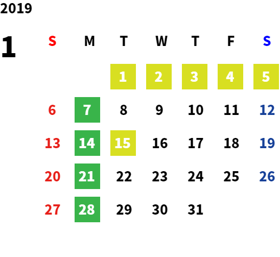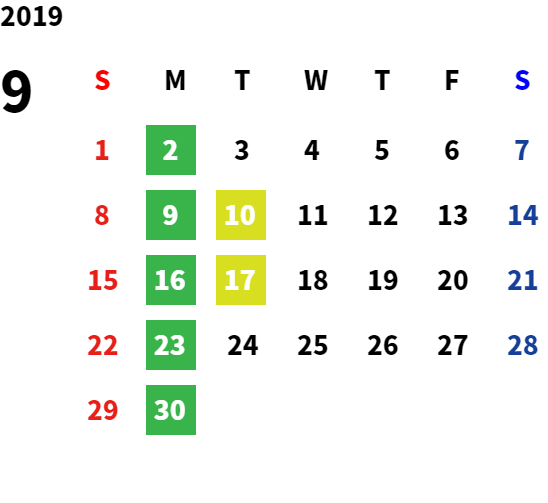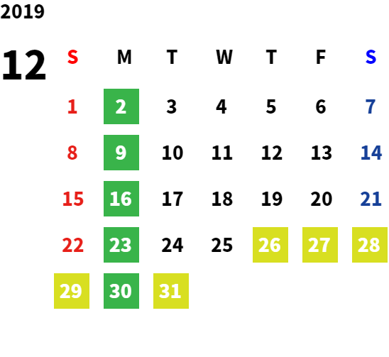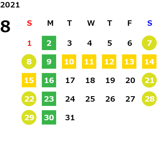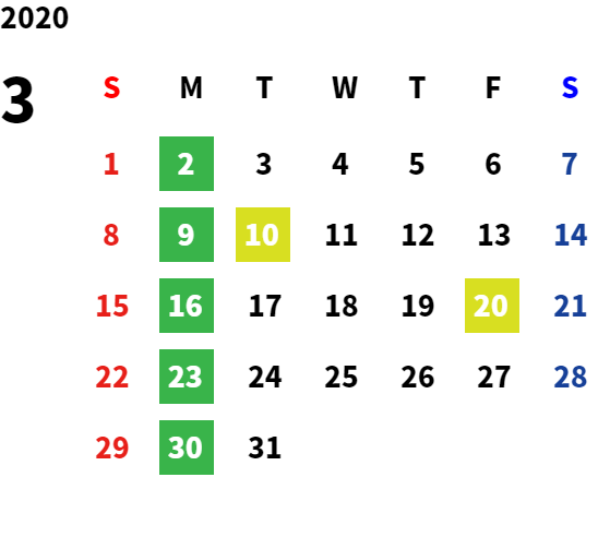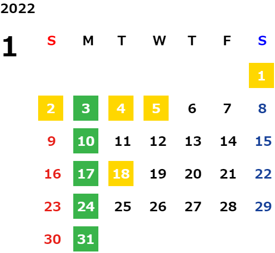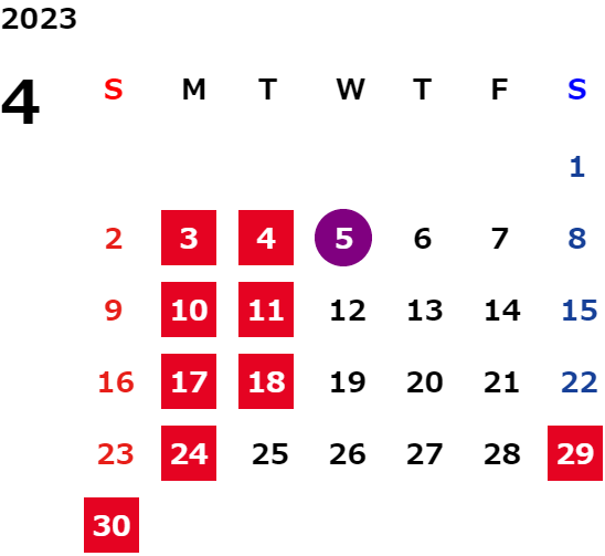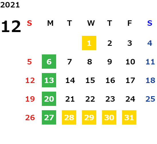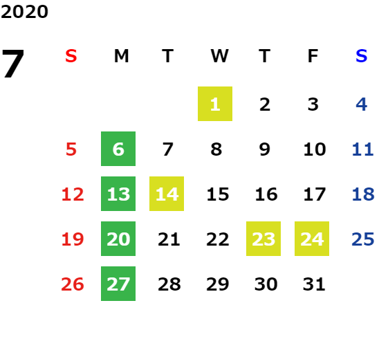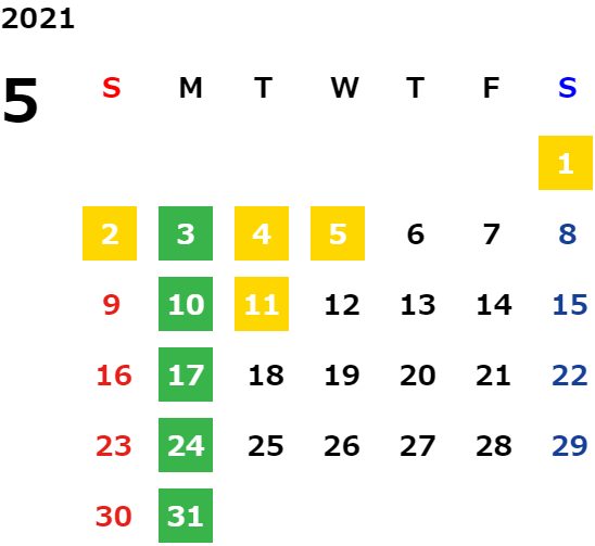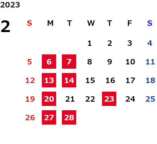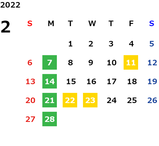 営業日カレンダー