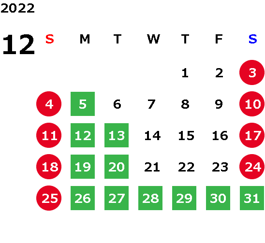 営業日カレンダー