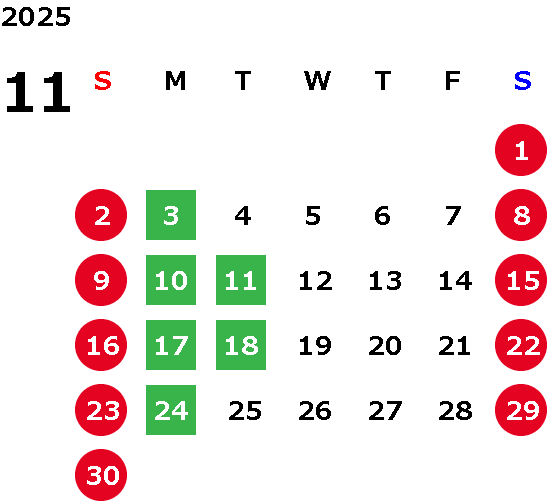 定休日は毎週月曜、毎月第2・第3火曜日です。