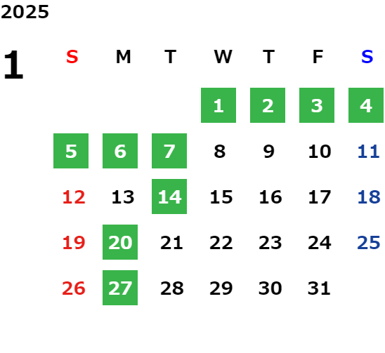 毎週月曜日(祝日の場合は翌火曜日) ※その他の定休日は営業カレンダーをご確認ください。