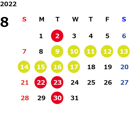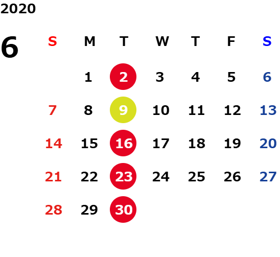 火曜日および一部の平日