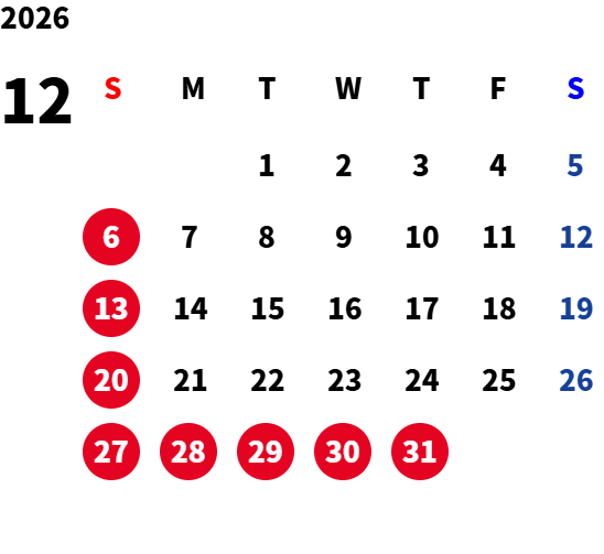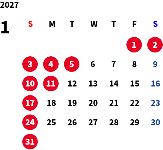 日曜日・祝日および一部平日