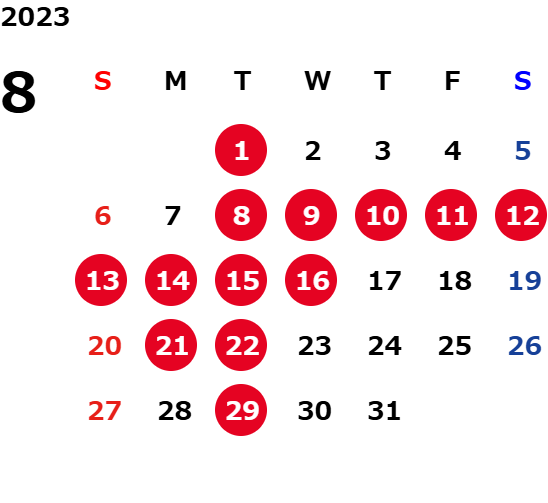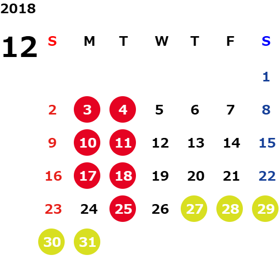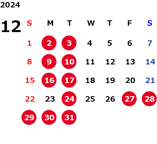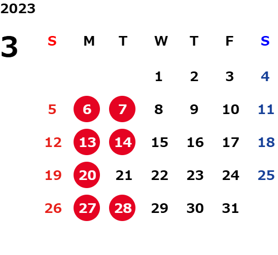火曜日および一部の平日