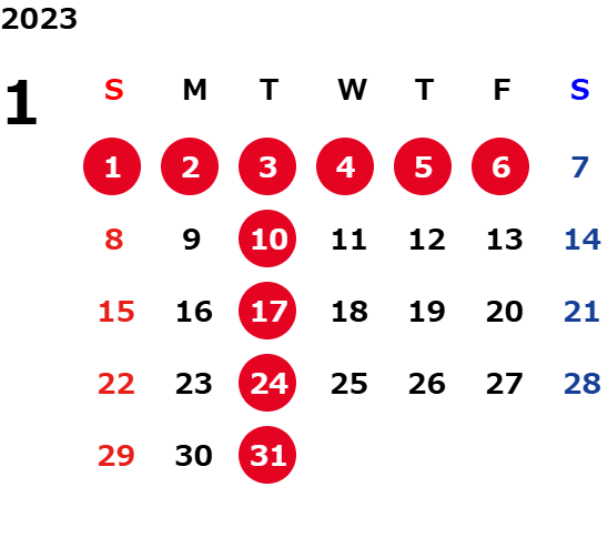 火曜日および一部の平日