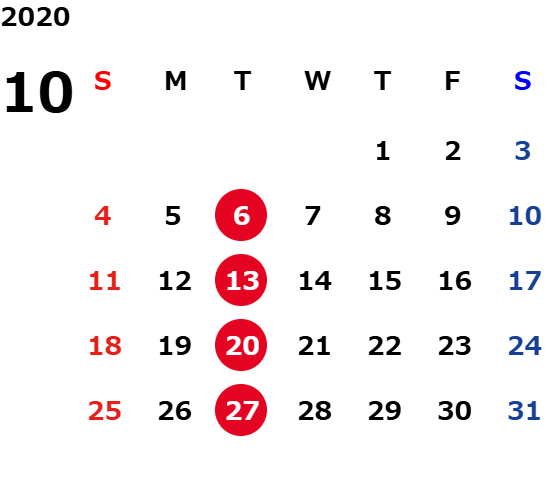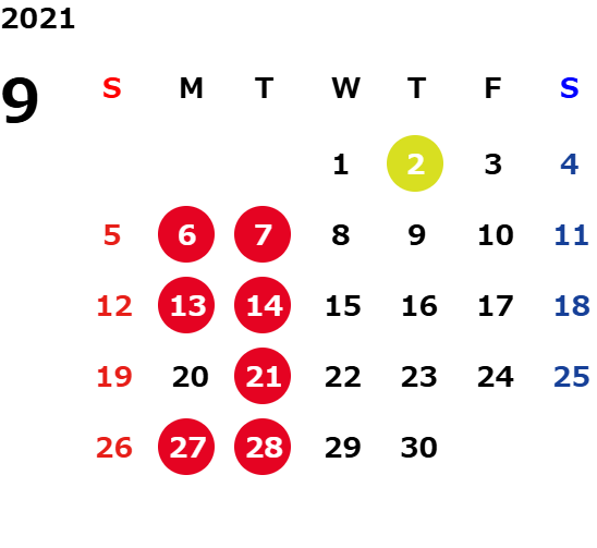 火曜日および一部の平日