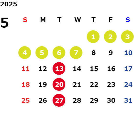 火曜日および一部の平日