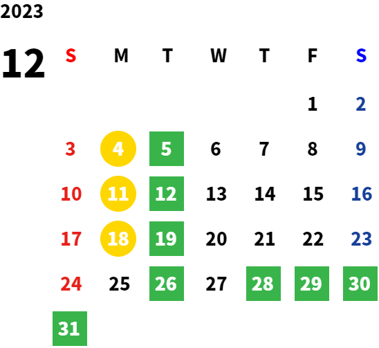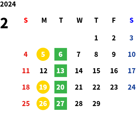 月曜日・火曜日 ※祝祭日の場合は営業