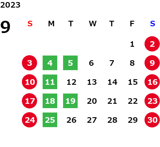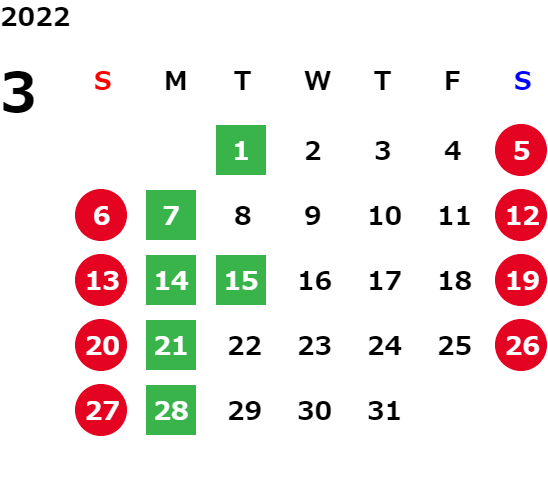 毎週月曜日及び、 毎月第一・第三火曜日は定休日