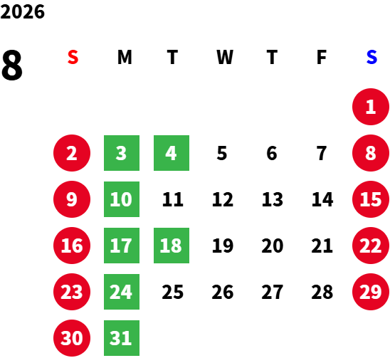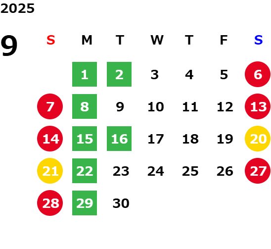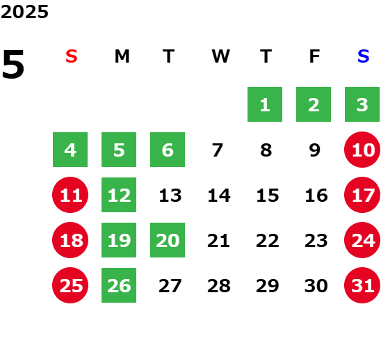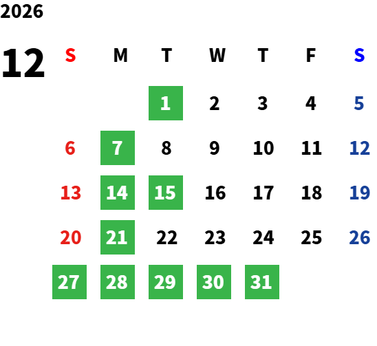 毎週月曜日及び、 毎月第一・第三火曜日は定休日