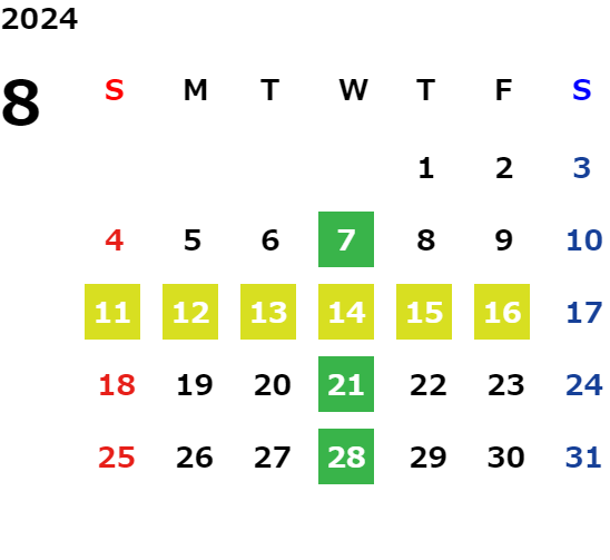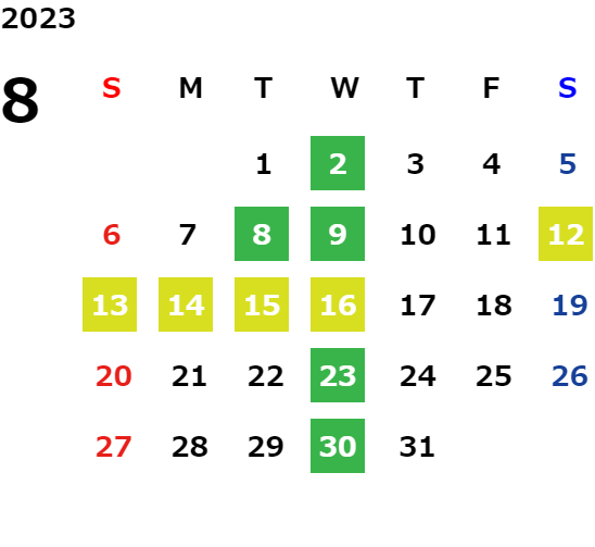 第2火曜日・毎週水曜日