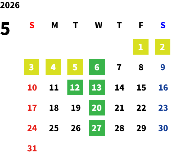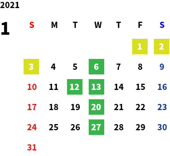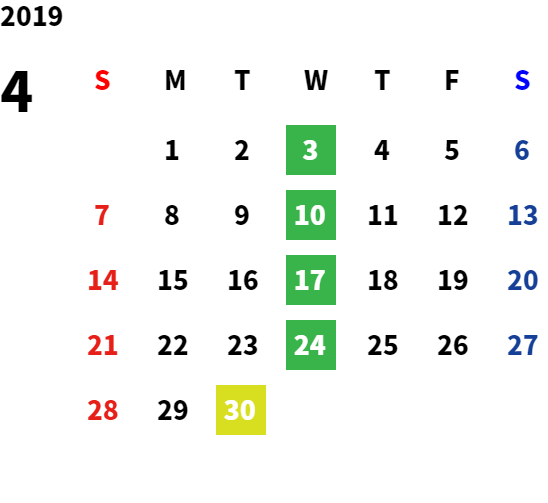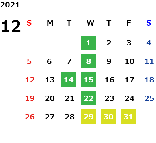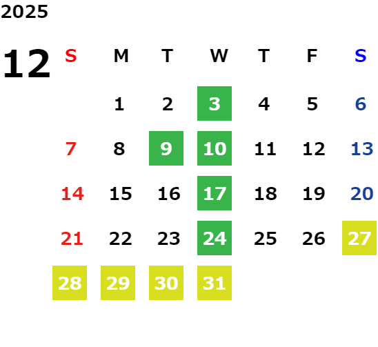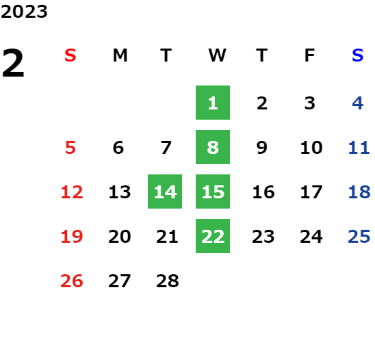 第2火曜日・毎週水曜日