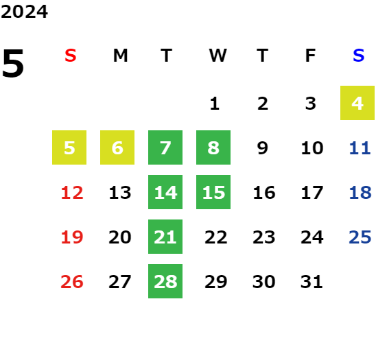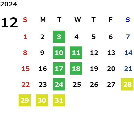 毎週火曜日・第二、第三水曜日(詳しくは営業日カレンダーをご確認ください。)
