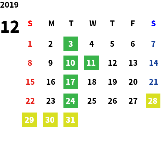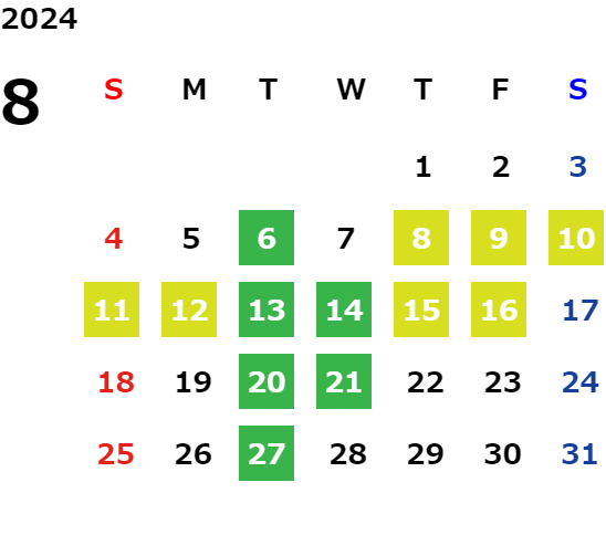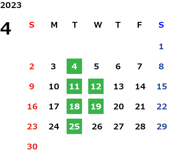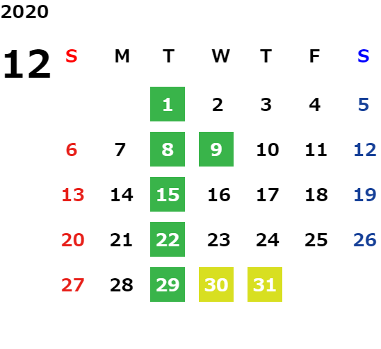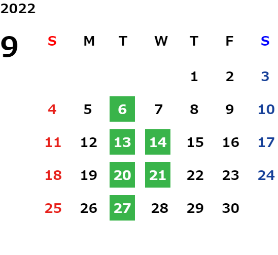 毎週火曜日・第二、第三水曜日(詳しくは営業日カレンダーをご確認ください。)