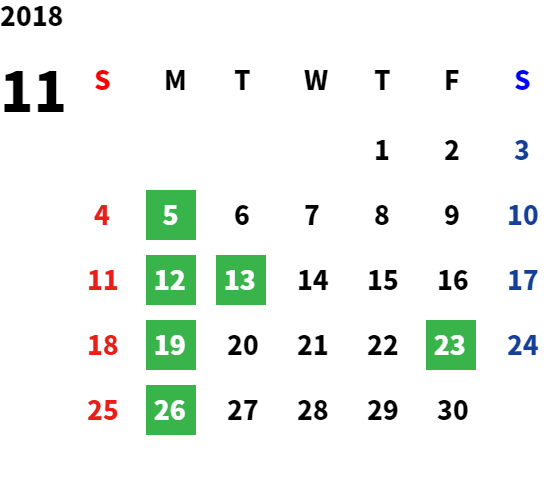 営業日カレンダー