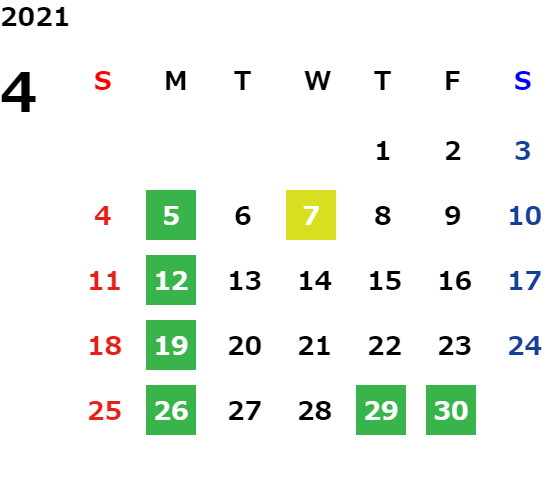 営業日カレンダー