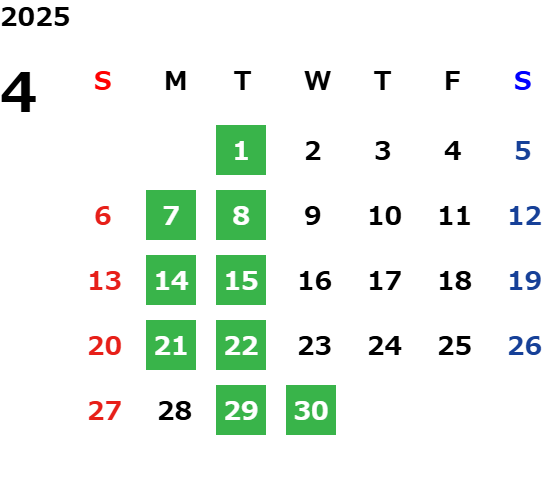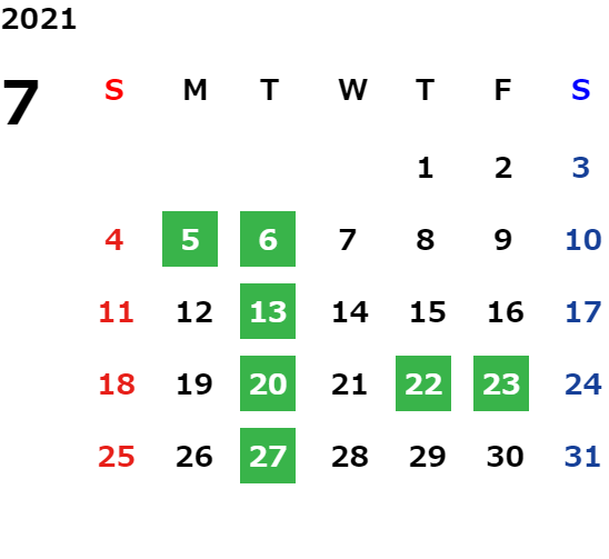 第一月曜日・毎週火曜日・祝祭日