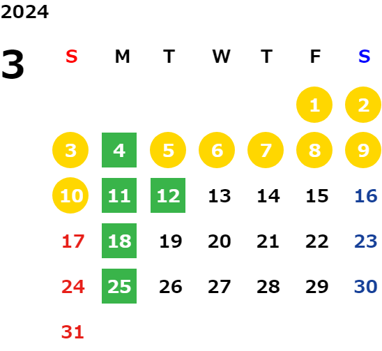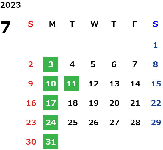 年末年始・ゴールデンウィーク・夏季休業