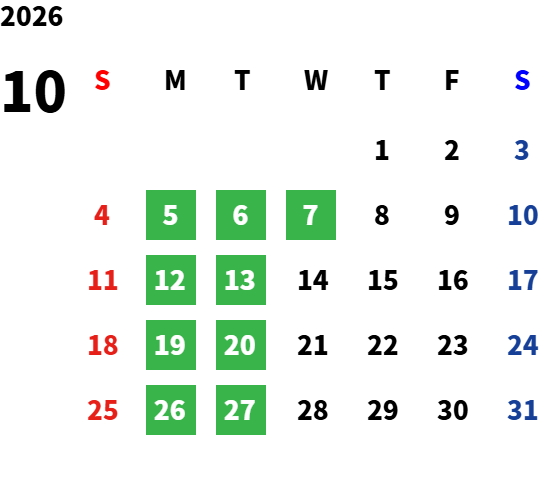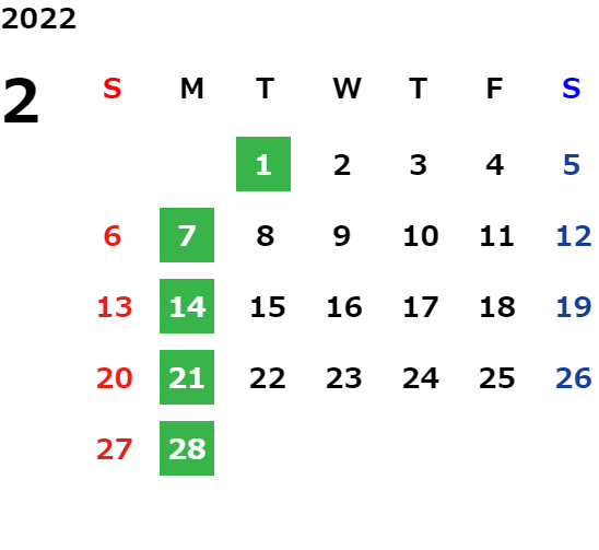 毎週月曜日及び第1火曜日定休