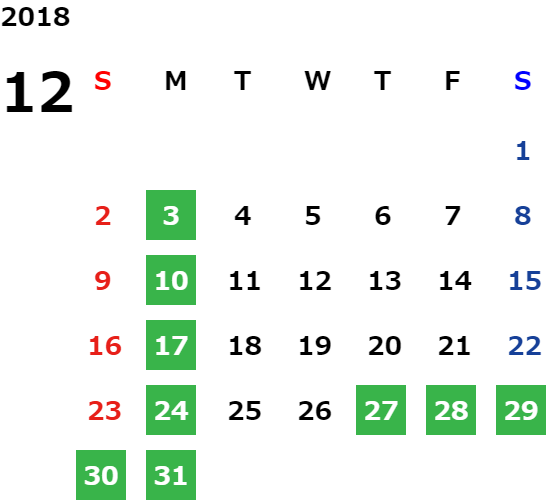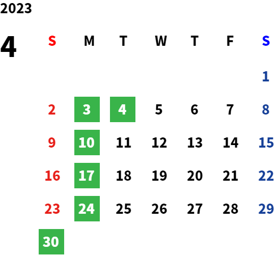 毎週月曜日及び第1火曜日定休
