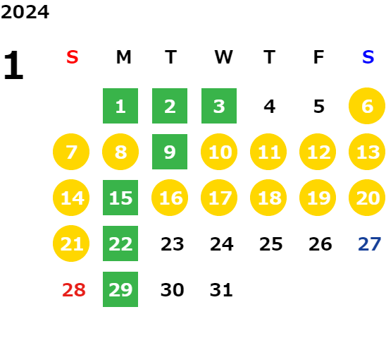 毎週月曜日(一部祝日営業日あり)詳しくは営業日カレンダーをご確認ください。