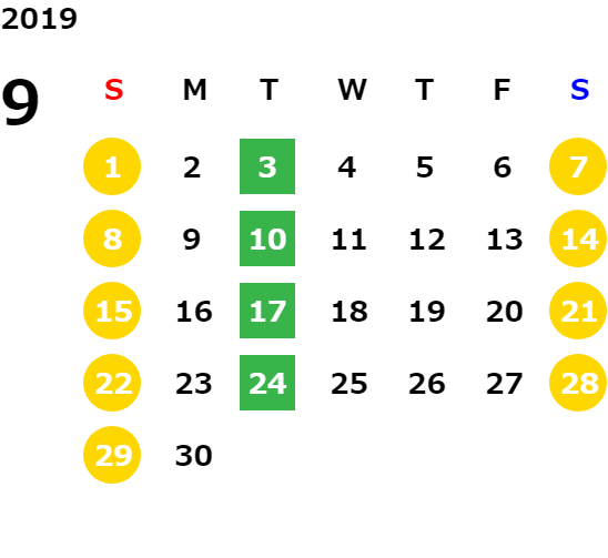 毎週火曜日