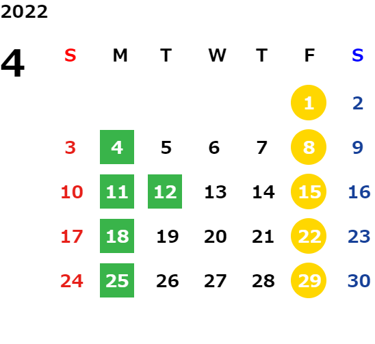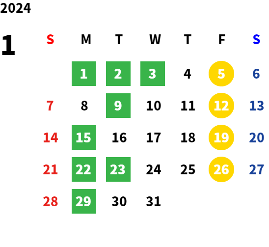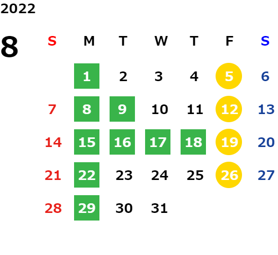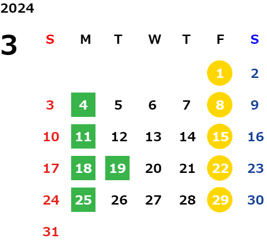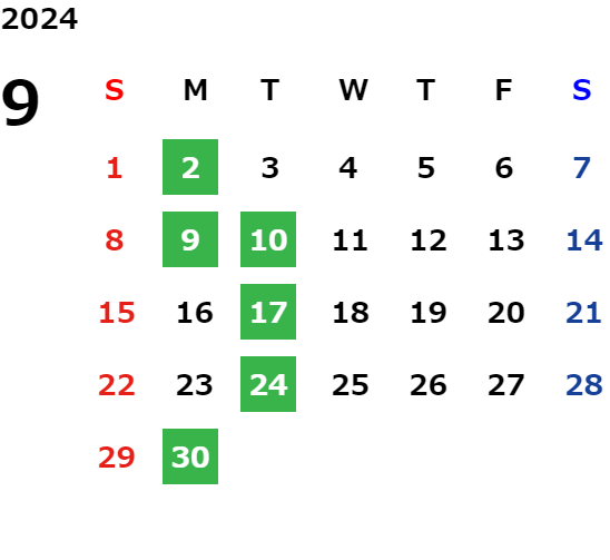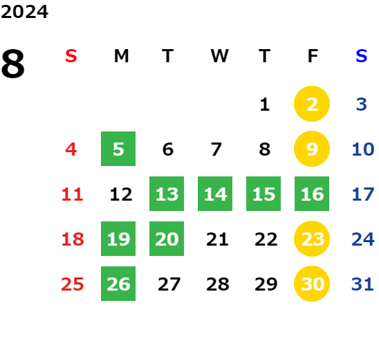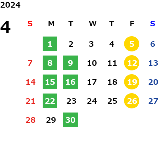 詳しくは店舗カレンダーをご確認ください