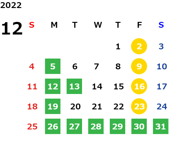 詳しくはカレンダーをご確認ください。