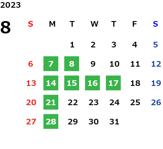 詳しくは店舗カレンダーをご確認ください
