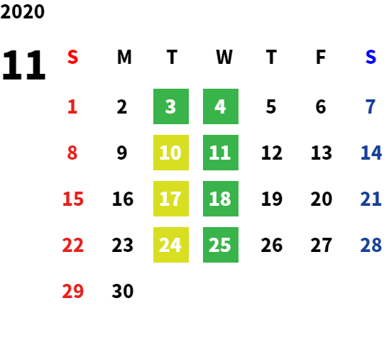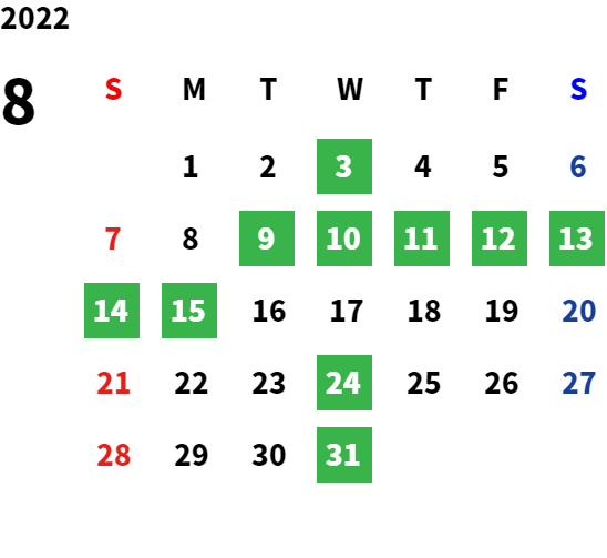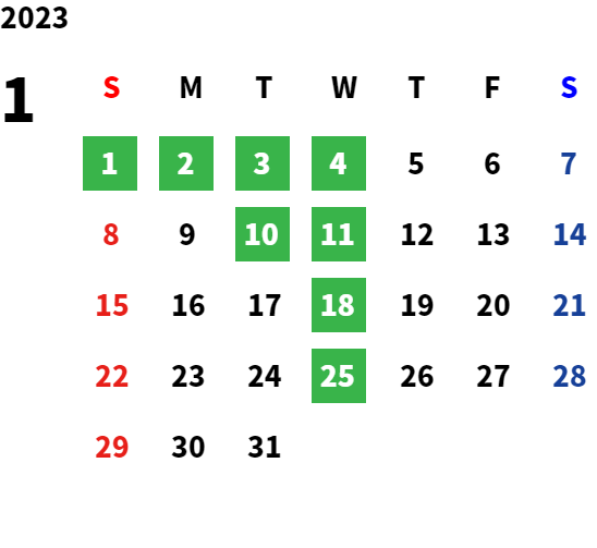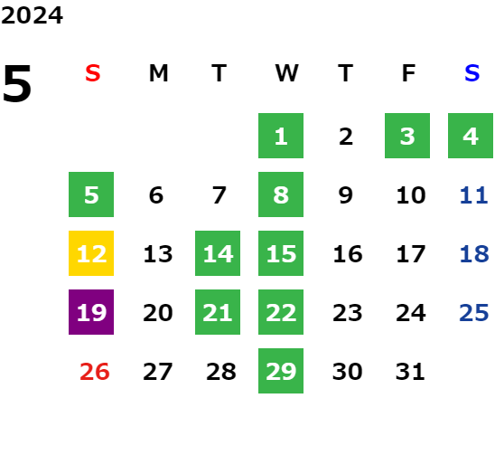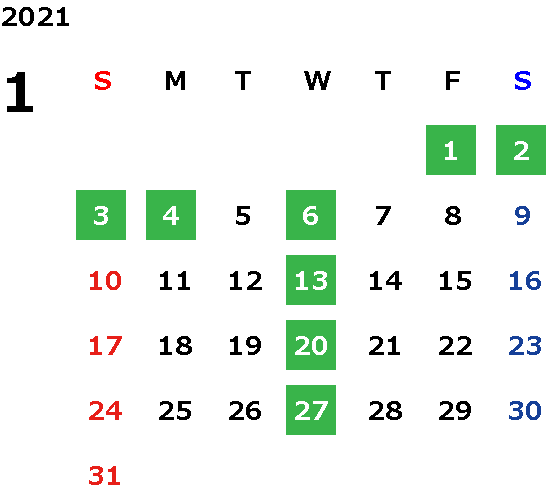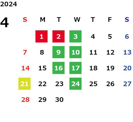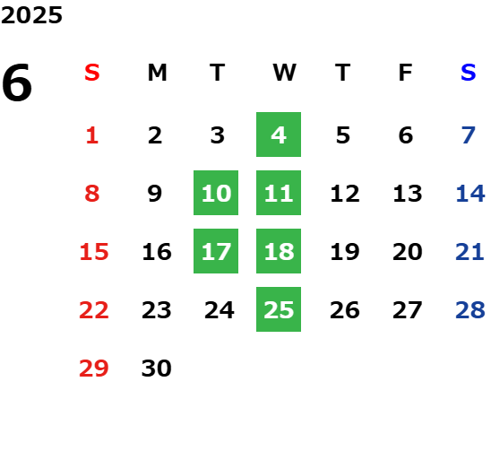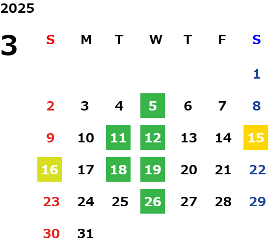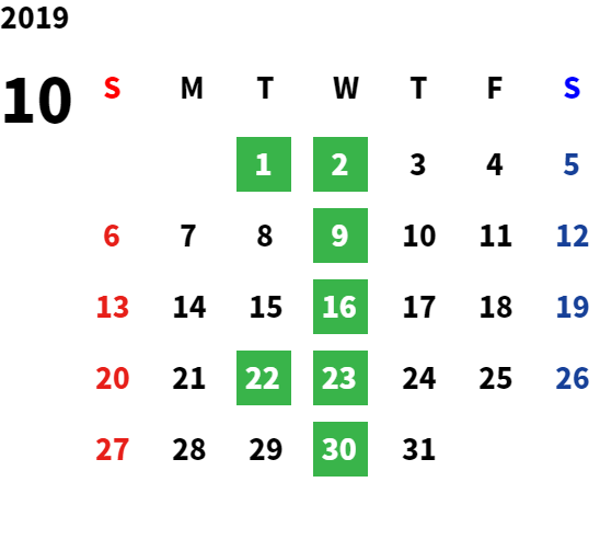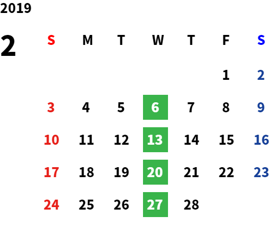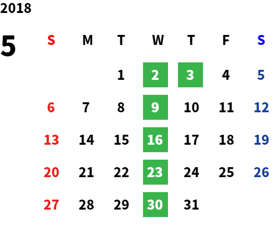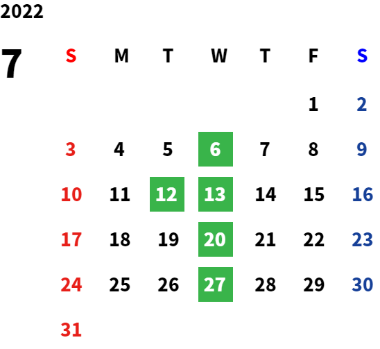 毎週水曜日・第二火曜日・第三火曜日