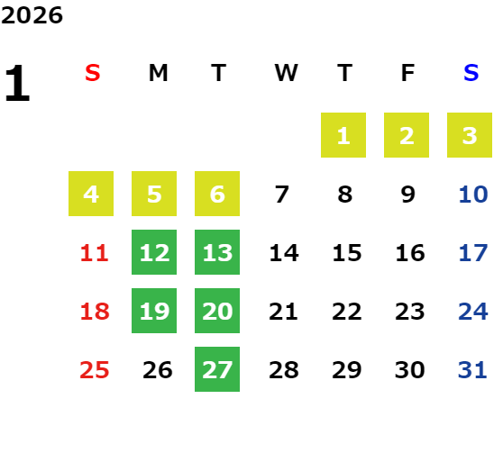 ※月によって休日が営業日に変更になる場合がございます