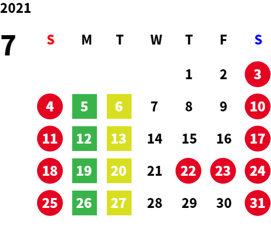 営業日カレンダー