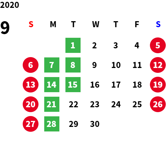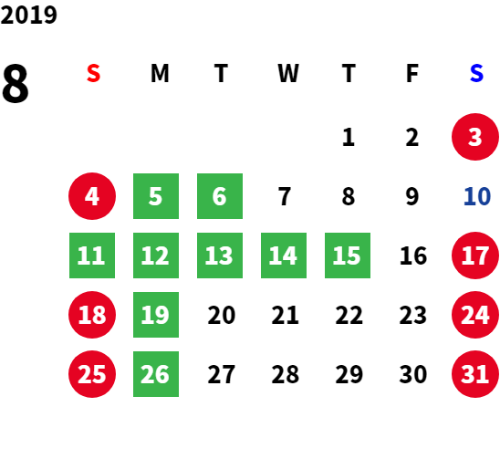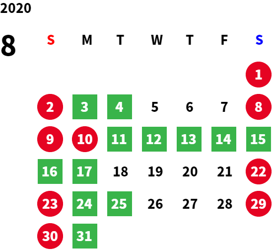 営業日カレンダー