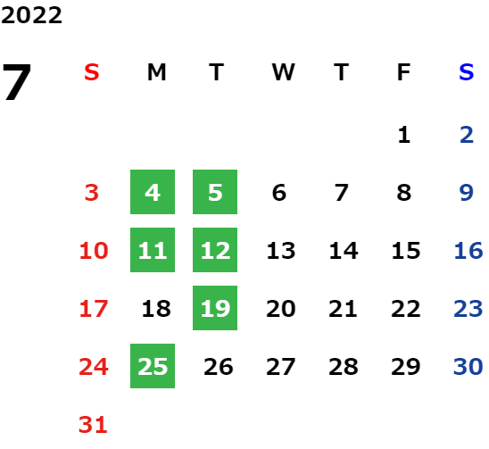 毎週月曜日。月曜日・火曜日連休の場合がございます。
