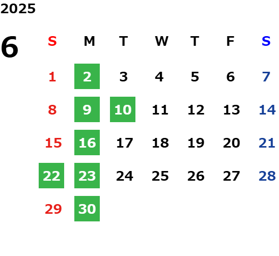 毎週月曜日。月曜日・火曜日連休の場合がございます。