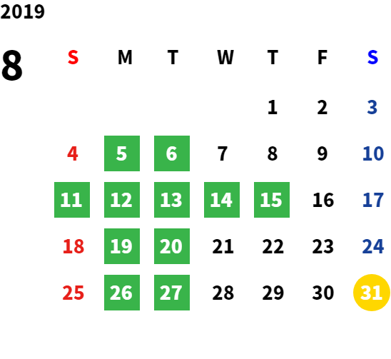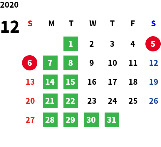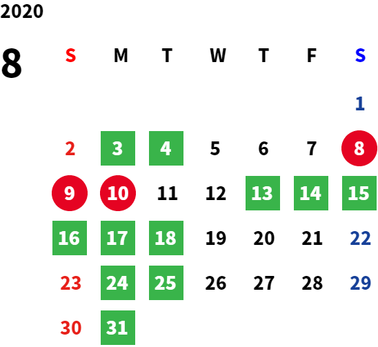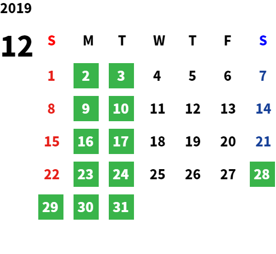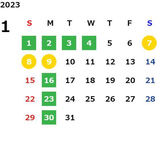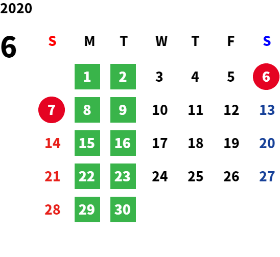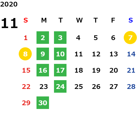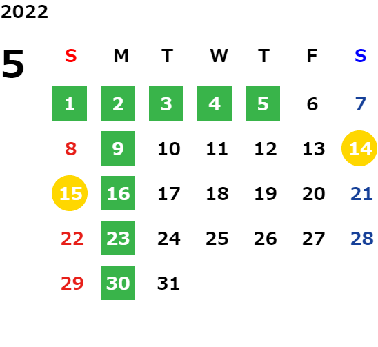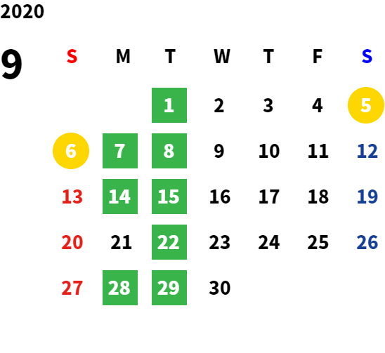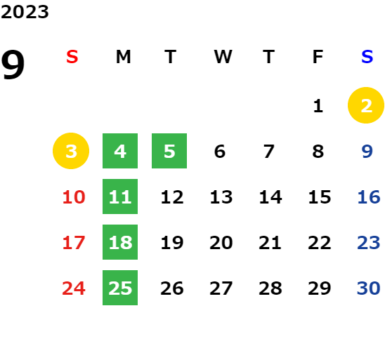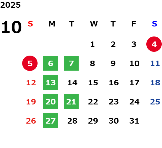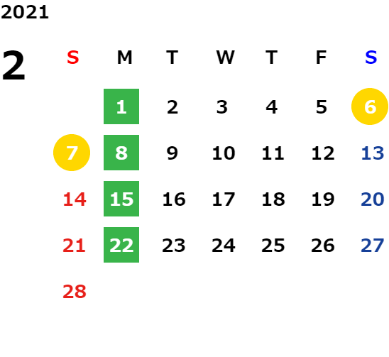 毎週月曜日、毎月第1火曜日
