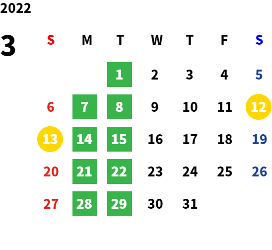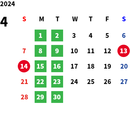 毎週月、火曜日