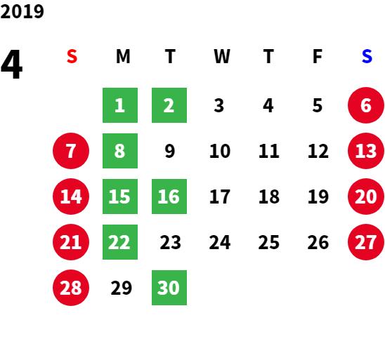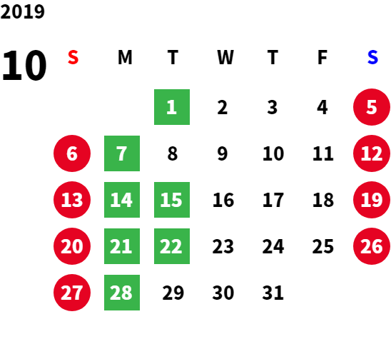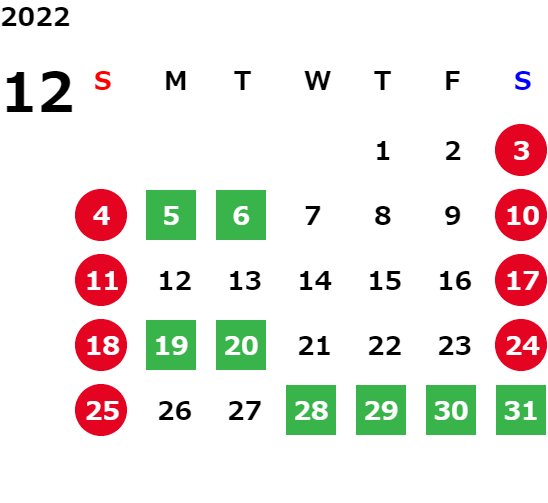 営業日カレンダー