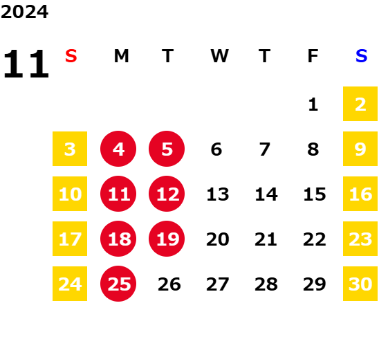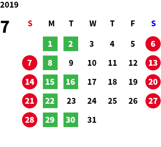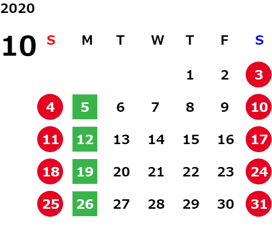営業日カレンダー