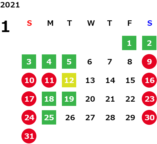 毎週月曜日、毎月第1・第3・第5火曜日、祝日
