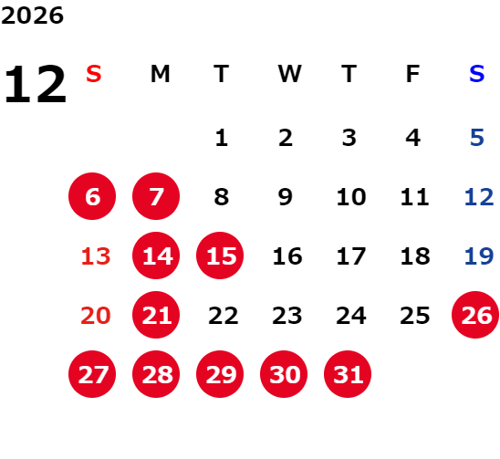 月曜、第1日曜、第3・5火曜、祝日