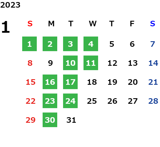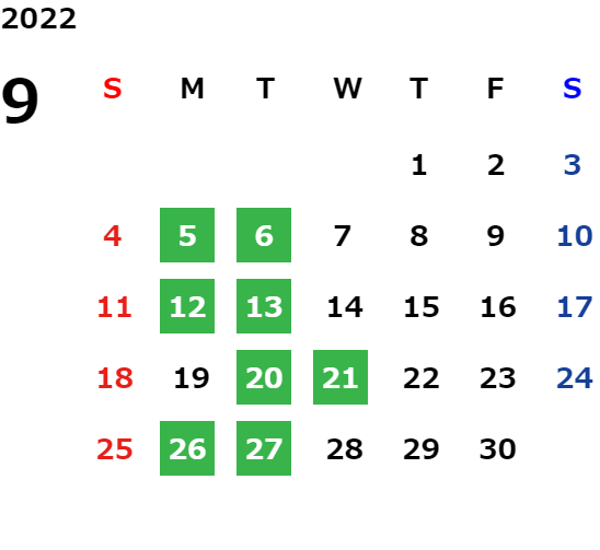月曜日・火曜日(一部を除く) 一部祝日、GW、お盆、年末年始