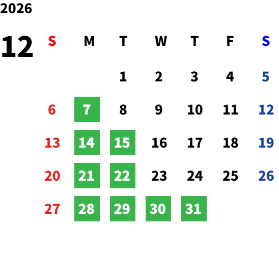 詳しくは店舗カレンダーをご確認ください