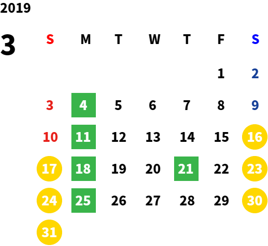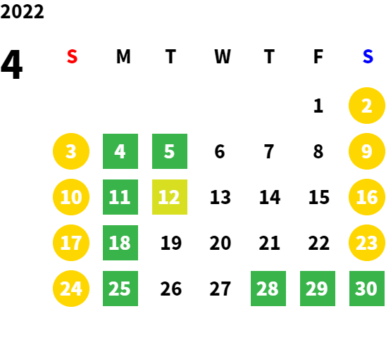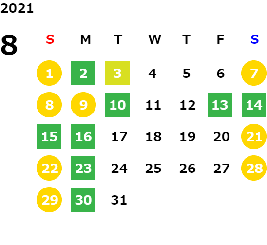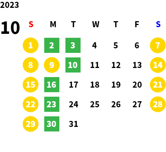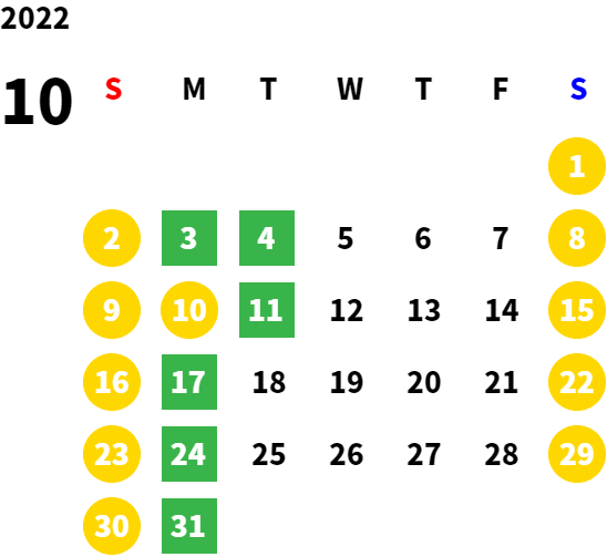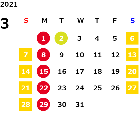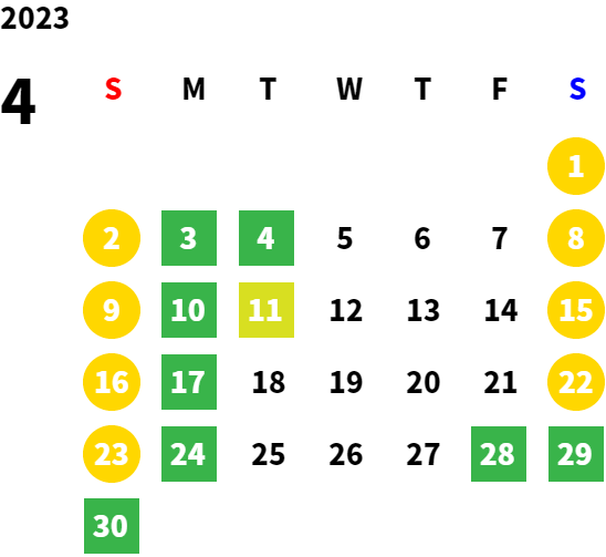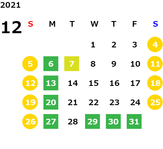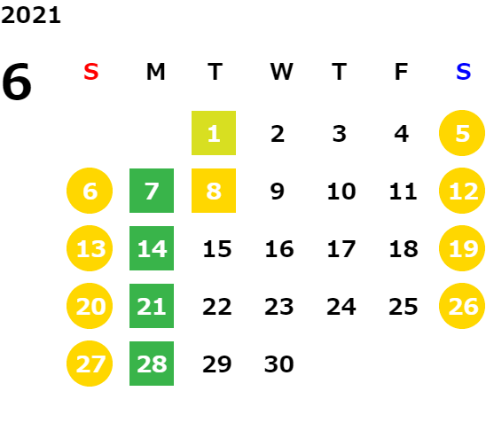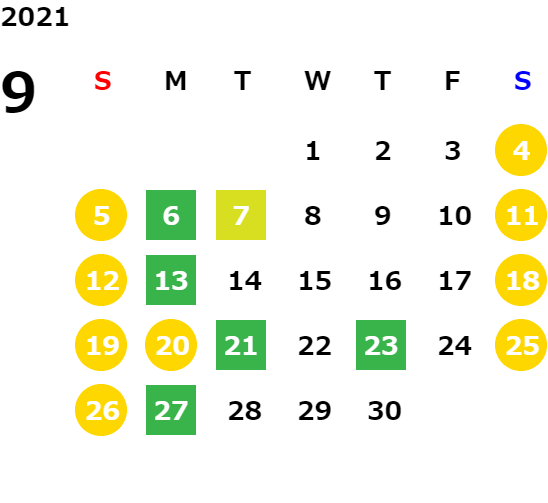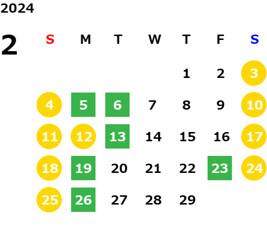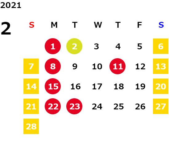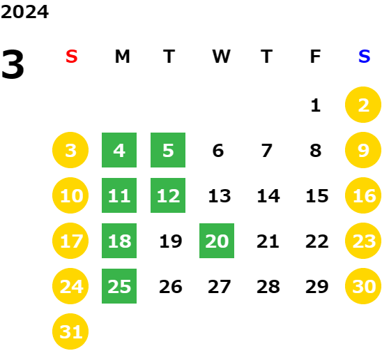 毎週月曜日/第1、2、3火曜日(営業日カレンダーにてご確認下さい)