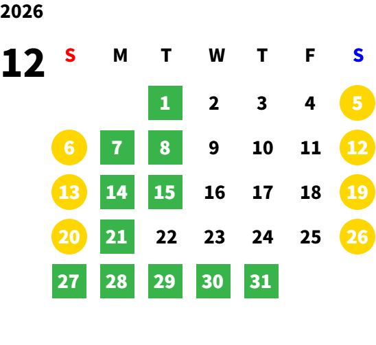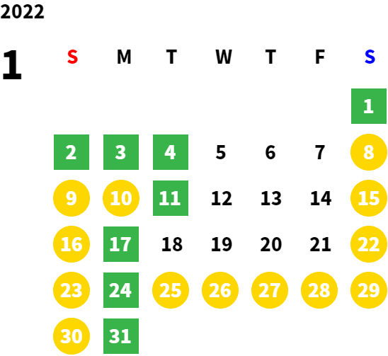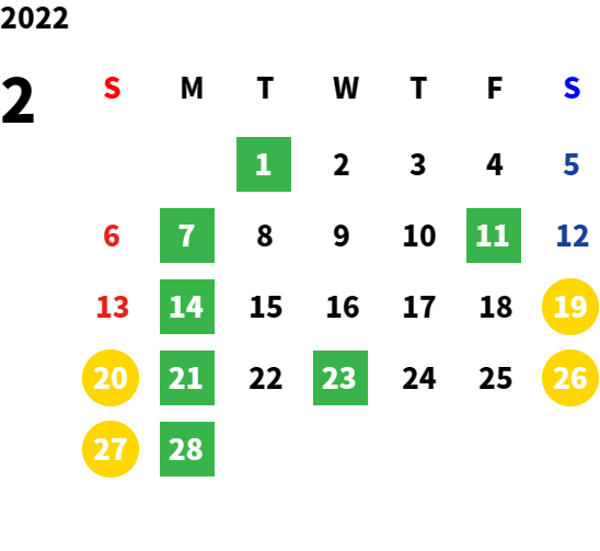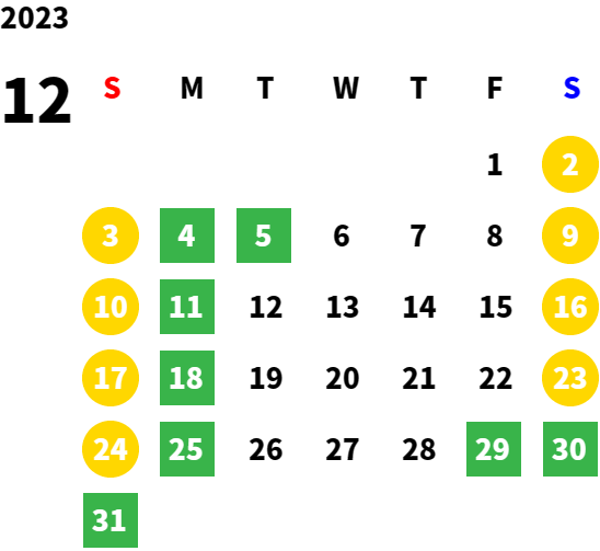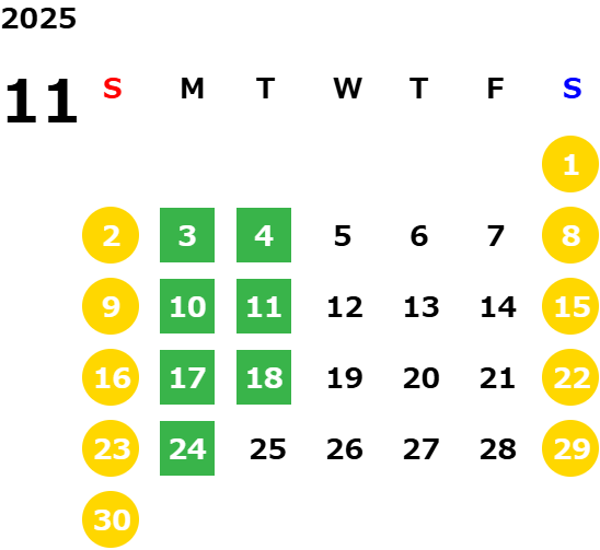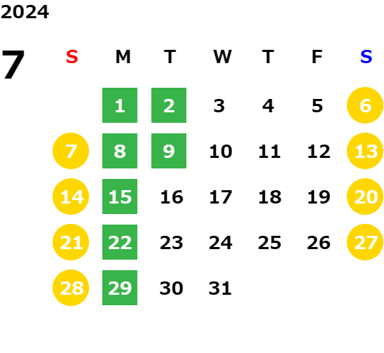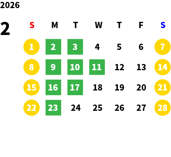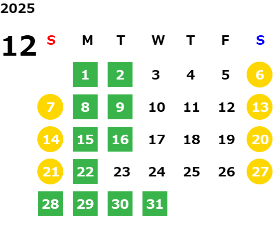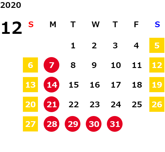 毎週月曜日/第1、2、3火曜日(営業日カレンダーにてご確認下さい)