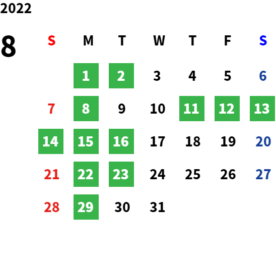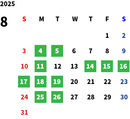 店舗の営業カレンダーをご覧ください。