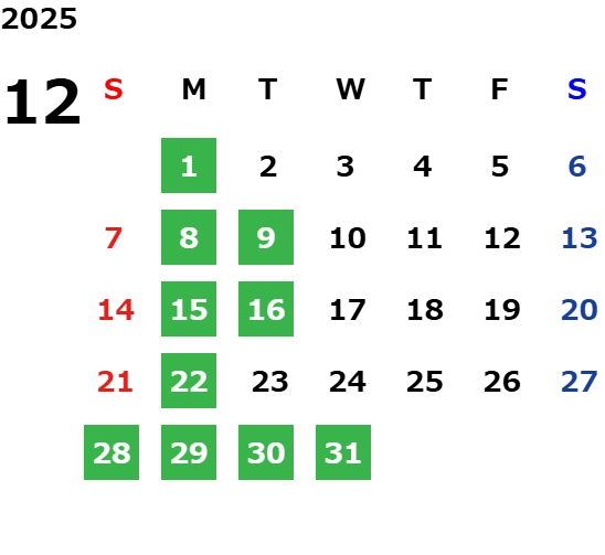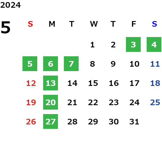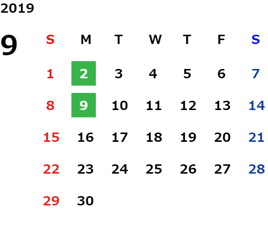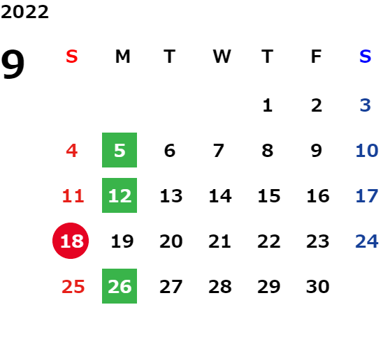 月曜日※・第2火曜日(※祝日の場合は営業、翌火曜日が定休日)